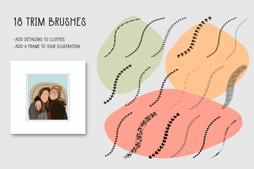 This comprehensive set includes 120 brushes and stamps, providing endless possibilities for crafting DIY minimalist portraits and illustrations. Whether you're a professional artist or an aspiring creator, this versatile kit is perfect for bringing your unique vision to life. With its wide range of brushes and stamps, you'll have the tools you need to create captivating and expressive faceless portraits. Elevate your digital artwork and unleash your artistic potential with our Faceless Portrait Creator Procreate Brush Set.